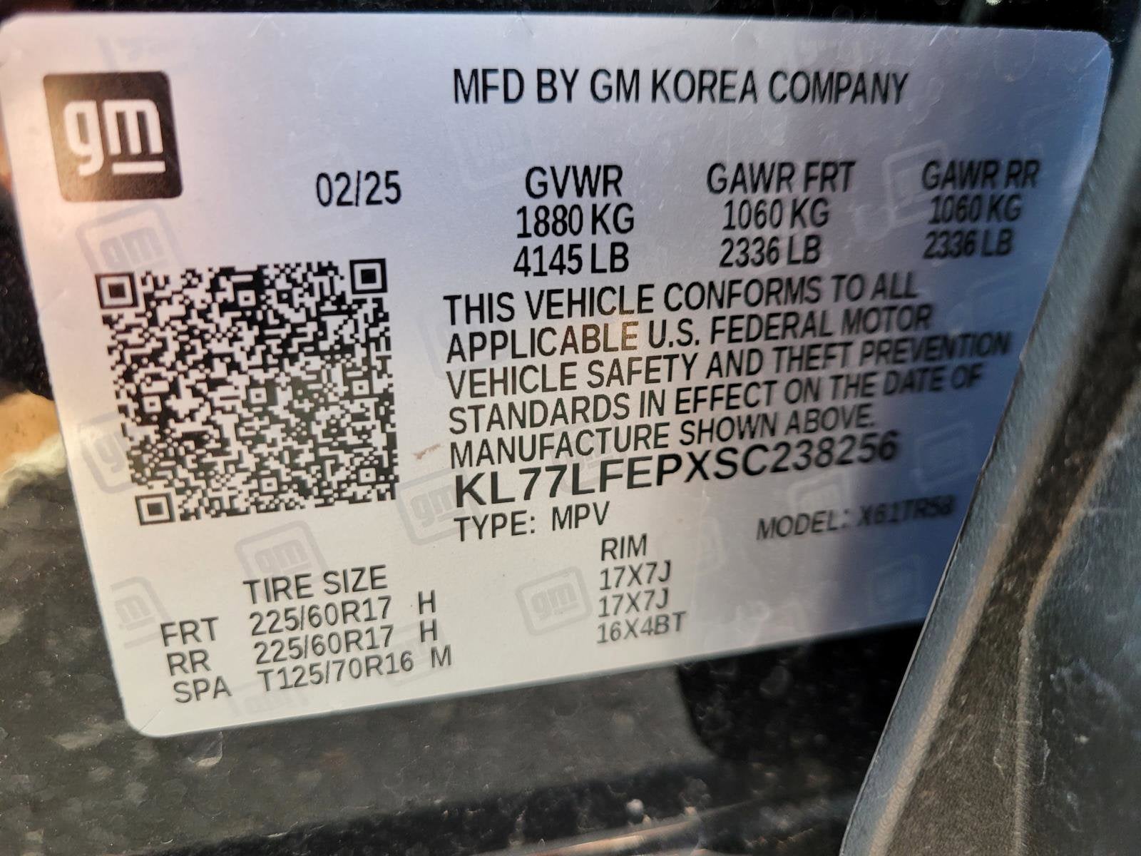 VIN: KL77LFEPXSC238256